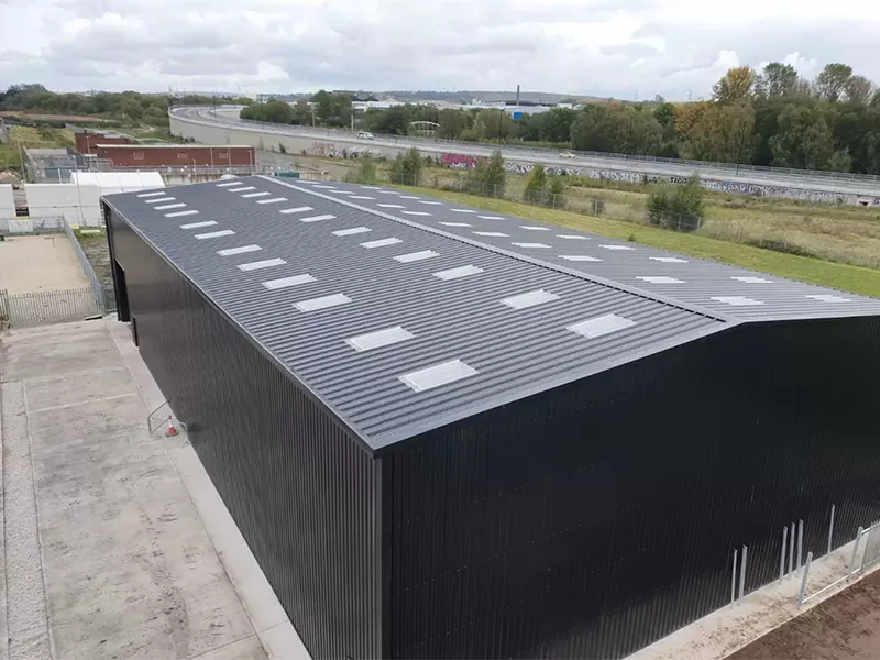 Efisiensi energi: Panel terisolasi sing digunakake ing gudang baja struktur nyedhiyakake efisiensi termal sing apik, tetep interior kanthi adhem nalika musim panas. Iki bisa nyuda kabutuhan sistem pemanasan lan pendinginan, ngirit energi lan nyuda biaya operasi.